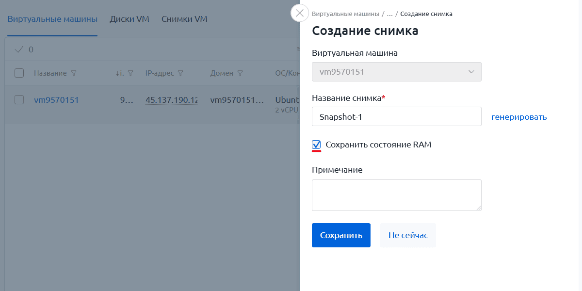 Снэпшот виртуального сервера — это снимок состояния виртуальной машины на определенный момент времени. Он включает в себя состояние операционной системы, установленного программного обеспечения, системных и пользовательских файлов. Думайте об этом как о фотографии вашего сервера в конкретный момент времени.