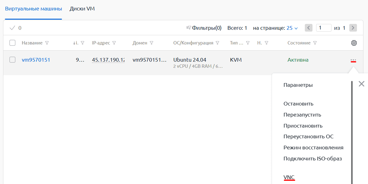 2. Перейдите в раздел Виртуальные машины